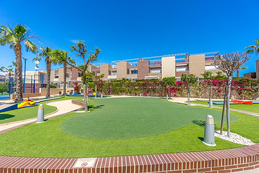 Du kan njuta av ett stort poolområde med en barnpool, jacuzzi och massageduschar, samt en paddel- / tennisbana, minigolf och lekplats - som alla står till invånarnas fria förfogande.